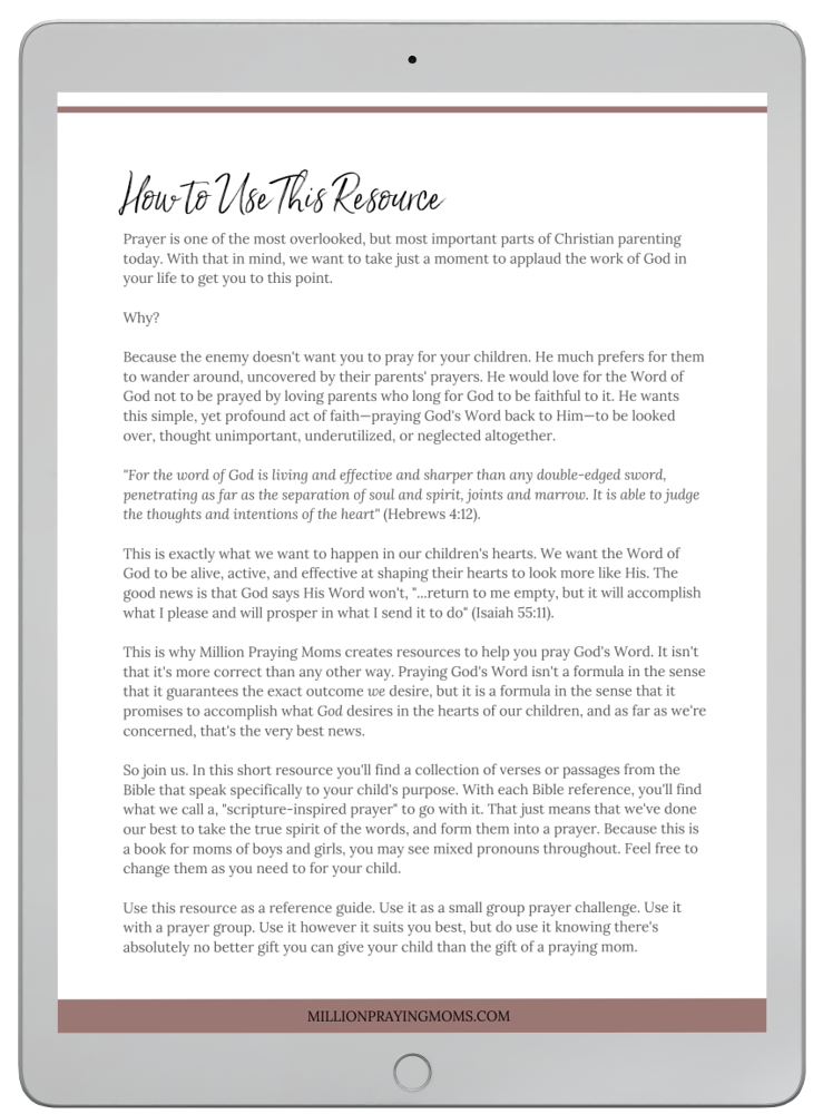 If you want to pray the Word of God for your family every day and are looking for a simple way to do so, become a subscriber, save $$, and automatically get the newest prayer guide from Million Praying Moms each month! Learn about it here.
